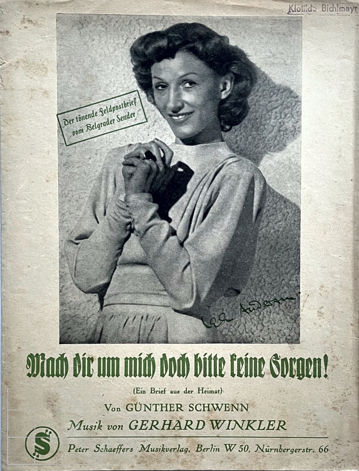 [P 125 Sch] Mach dir um mich doch bitte keine Sorgen (Ein Brief aus der Heimat). Der tönende Feldpostbrief vom Belgrader Sender. Peter Schaeffers: Berlin 1942.