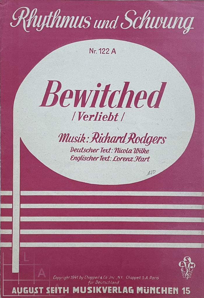 vö. 1950 August Seith Noten(Akkordeon/Gesang) [o. Nr.] Verliebt (Bewitched). August Seith Musikverlag: München o. J. [1950] Verliebt Reihe: Rhythmus und Schwung, Nr. 122 A [ggf. sonstige Bemerkungen]