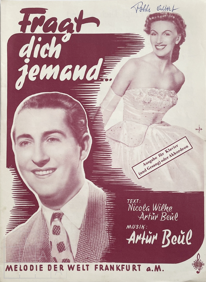 vö. 1952 Melodie der Welt Noten(Klavier/Akkordeon/Gesang) [M.d.W. 3594] Fragt dich jemand... Verlag Melodie der Welt: Frankfurt a.M. 1952. Fragt dich jemand [ggf. Bemerkungen] [ggf. sonstige Bemerkungen]