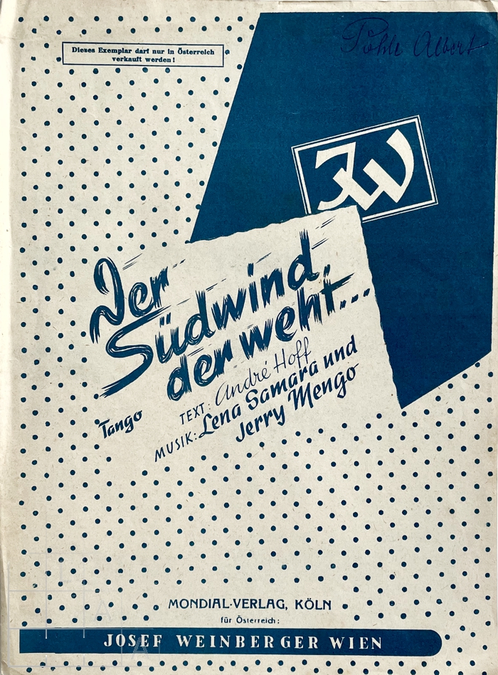 vö. 1951 Josef Weinberger Noten(Klavier/Gesang) [J.W. 3367 a] Der Südwind, der weht… (Gauchos Abschied). Verlag Josef Weinberger: Wien 1951. Der Südwind, der weht [ggf. Bemerkungen] [ggf. sonstige Bemerkungen]