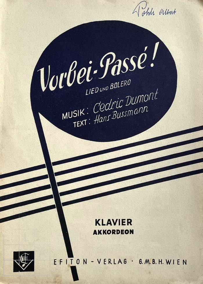 vö. 1952 Efi-Ton Noten(Klavier/Akkordeon/Gesang) [Efi-348-Ton] Vorbei - Passé. Efi-Ton-Verlag, Wien o. J. [1952]. Vorbei - Passé [ggf. Bemerkungen] [ggf. sonstige Bemerkungen]