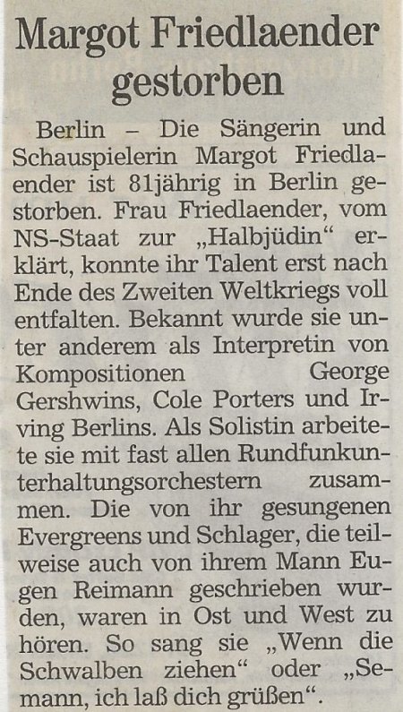 Inhaber des Musikverlags Stefan Thoss[3] | Ehemann der Sängerin Margot Friedländer[2] Quellen zugehöriger GND-Eintrag (der Deutschen Nationalbibliothek) Berliner Morgenpost (27.12.1998) Music Publishers' International ISMN Directory. Saur: München & Berlin 2003, S. 141 und 533.